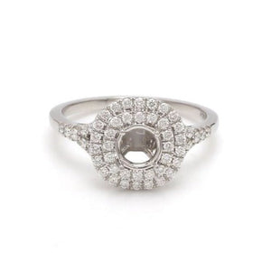 10K White Gold Round Cut Diamond Double Halo Ring, Semi Mount Engagement Ring
