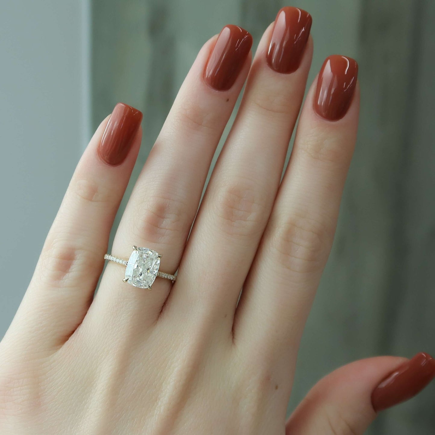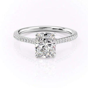18K Elongated Cushion Cut Diamond Pave Engagement Ring