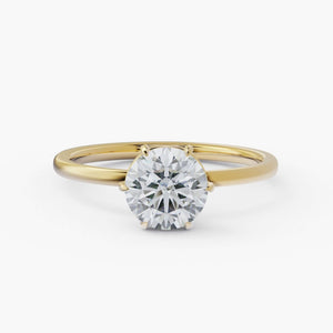 Celebrate your love with our 6-Prong Round Cut Solitaire Moissanite Engagement Ring. Featuring a brilliant round-cut moissanite securely held in a classic six-prong setting, this solitaire design maximizes sparkle and showcases the stoneβs brilliance from every angle. Crafted in high-quality 14K or 18K gold, the sleek band provides timeless elegance and durability. Perfect for engagements, proposals, or anniversaries, this ring combines ethical luxury with modern sophistication.